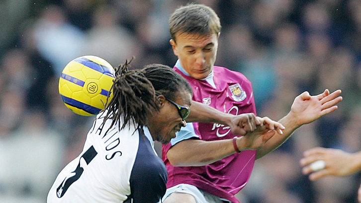 West Ham’s Mark Noble fiercely contesting the ball with Tottenham’s Edgar Davids in a 1-1 draw in 2005