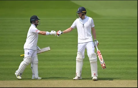 Ben Duckett and Zak Crawley celebrate their fifty partnership in England’s first innings at Lord’s. Getty Images, June 29th, 2023.
